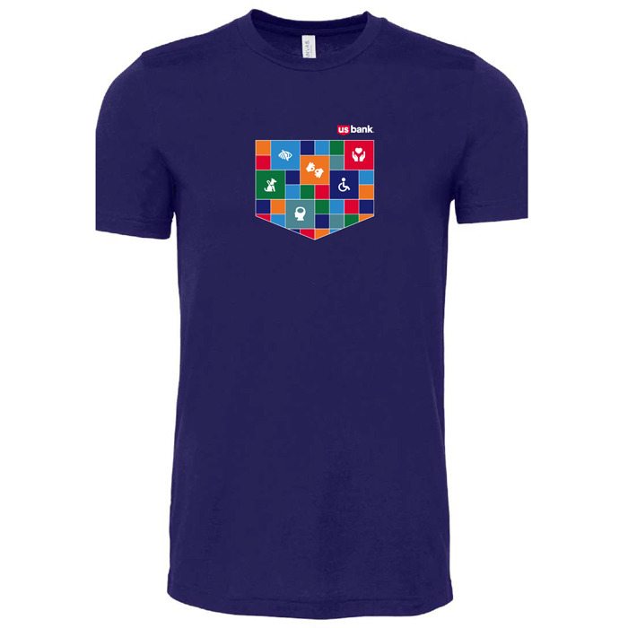 Show your support of the Disability Business Resource Group with this Bella + Canvas 4.2 oz., 100% combed and ringspun cotton shirt with the U.S. Bank logo and custom Disability graphics on the front and back.