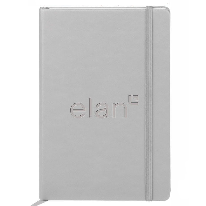 This hard-cover journal includes a gusseted interior pocket where you can store your business cards or other small documents. Your pen will glide as you write on the 192 ivory, lined acid free pages - a true delight! Use the ribbon as a bookmark to find important pages, and the elastic closure to mark the next blank page. Outer cover measures 5.75" x 8.375" and includes a debossed Elan logo.