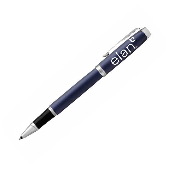 A stylishly reliable writing partner, PARKER IM rollerball pens pair smart, polished designs with a sleek tapered shape. Matte blue pen with silver trim and a fine rollerball tip with black ink. Elan logo printed on cap and packaged in a stylish, two-piece gift box which measures 7"L x 1.25"H x 2"W.