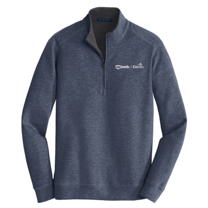 Designed for the modern professional, this double-knit style has a striking dual-color look thanks to two fabrics being bonded together. Easy to dress up or down, it's exceptionally soft and versatile enough to wear year-round. 7.5-ounce, 60/40 cotton/poly with cadet collar, set-in sleeves, open cuffs and hem. Estate blue heather with an embroidered U.S. Bank | Elavon logo on the left chest.
