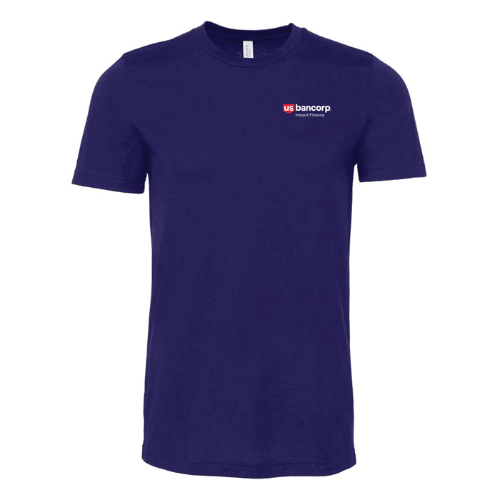This ultra-soft, unisex T-shirt from Bella + Canvas is offered in team navy with the U.S. Bancorp Impact Finance logo on the left chest. 100% combed and ring-spun cotton. Unisex sizing.