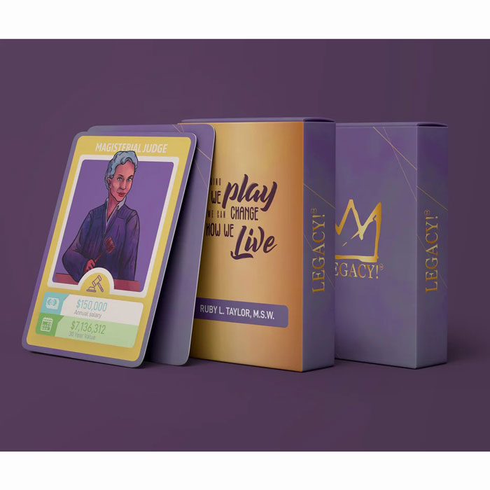 Legacy! Card Game is a fun, educational, interactive way to celebrate diversity with a mission to empower black and brown students to learn how career and financial choices impact our legacy and wealth with examples that are practicable. It exposes all players to investing concepts and career possibilities through a diverse lens they may not otherwise encounter. Students learn about income and jobs, insurance, investments, protecting their assets, and dealing with life events.