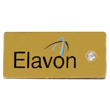 The newly redesigned lapel pin for employees with 30+ years of service is gold-colored with a clear stone and magnetic backing.