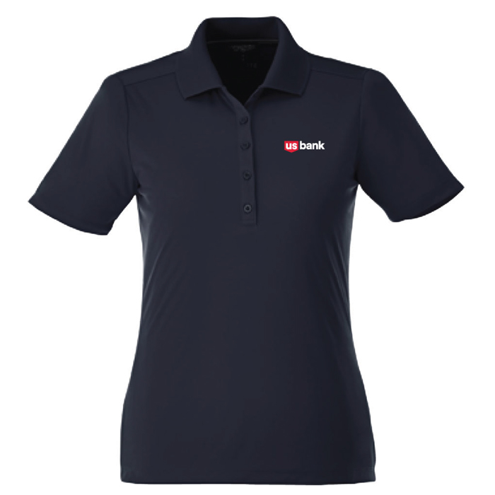 The versatile Dade polo has a classic look that never goes out of style with breathable fabric, a wicking finish, UV protection, snag-resistance and wash-and-wear convenience. 100% textured polyester knit with polyester flat knit collar, 5-button placket as well as shaped seams and a tapered waist for a flattering fit. Navy blue with heat sealed U.S. Bank logo on the left chest.
