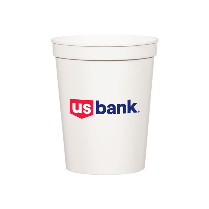 Smooth sided 16 oz plastic tumbler with the U.S. Bank logo on both sides of the cup. Hand wash is recommended. Sold in packs of 10.