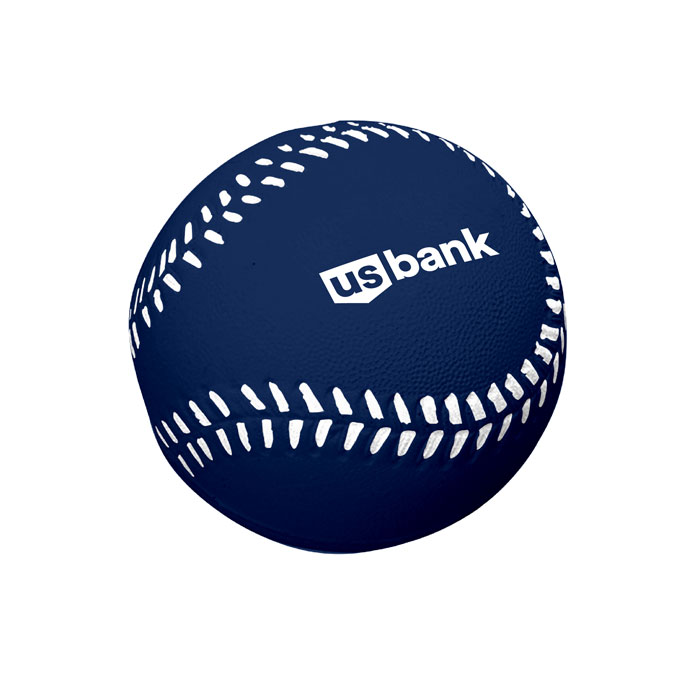 Squeeze your tension away with a baseball stress reliever! Made of polyurethane foam, they return to their original shape after squeezing. Navy blue with the U.S. Bank logo. Ball measures 3 7/8" diameter. CPSIA compliant.