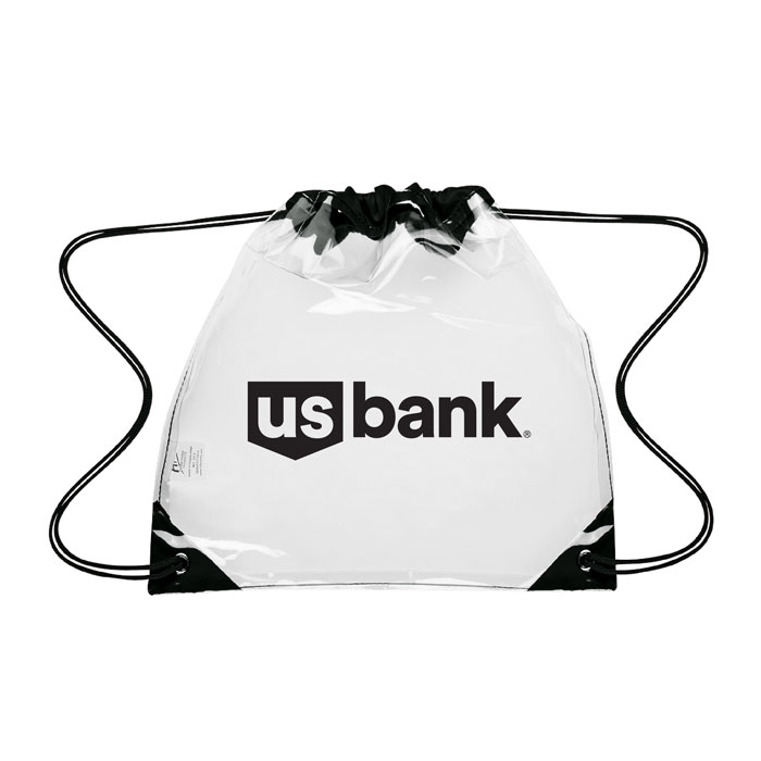 This clear drawstring backpack is perfect for fans packing their stadium and event-day items safely. Made of clear PVC with reinforced eyelets trimmed in black with matching drawstrings. Backpack measures 12" x 12" which meets NFL size guidelines.