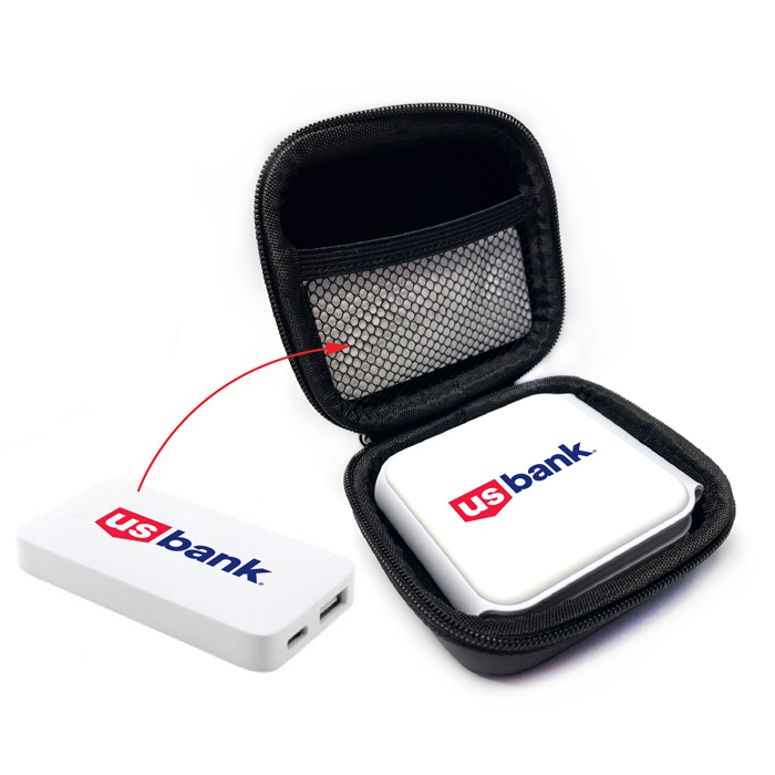 This is the perfect travel kit for busy teams that travel a lot for business and need to keep multiple devices charged and ready to go. The 3-in-1 foldable charger can wirelessly charge a compatibale phone, watch, and earbud case at the same time. When not in use, it folds into a compact size and fits in a convenient zippered travel case. All components are branded with the U.S. Bank logo.