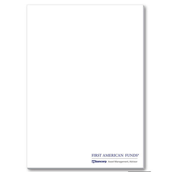 5" x 7" non-adhesive scratch pads that include the First American Funds logo in the bottom right corner. Each pad contains 50 sheets of non-adhesive note paper. Sold in packs of 10.