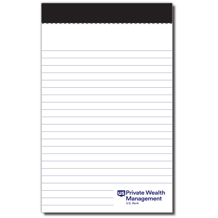 Custom lined tablets branded with the Private Wealth Management logo in the lower right corner. 30 sheets per pad, measuring 5" x 8". Shrinkwrapped in packs of 10.