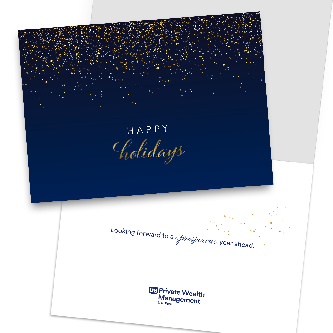 Printed on premium heavyweight cardstock, each card showcases a beautifully embossed design accented with foil stamping for a luxurious finish. Each set includes 25 cards and matching gold-lined envelopes. Perfect for sharing appreciation and good wishes throughout the holiday season.